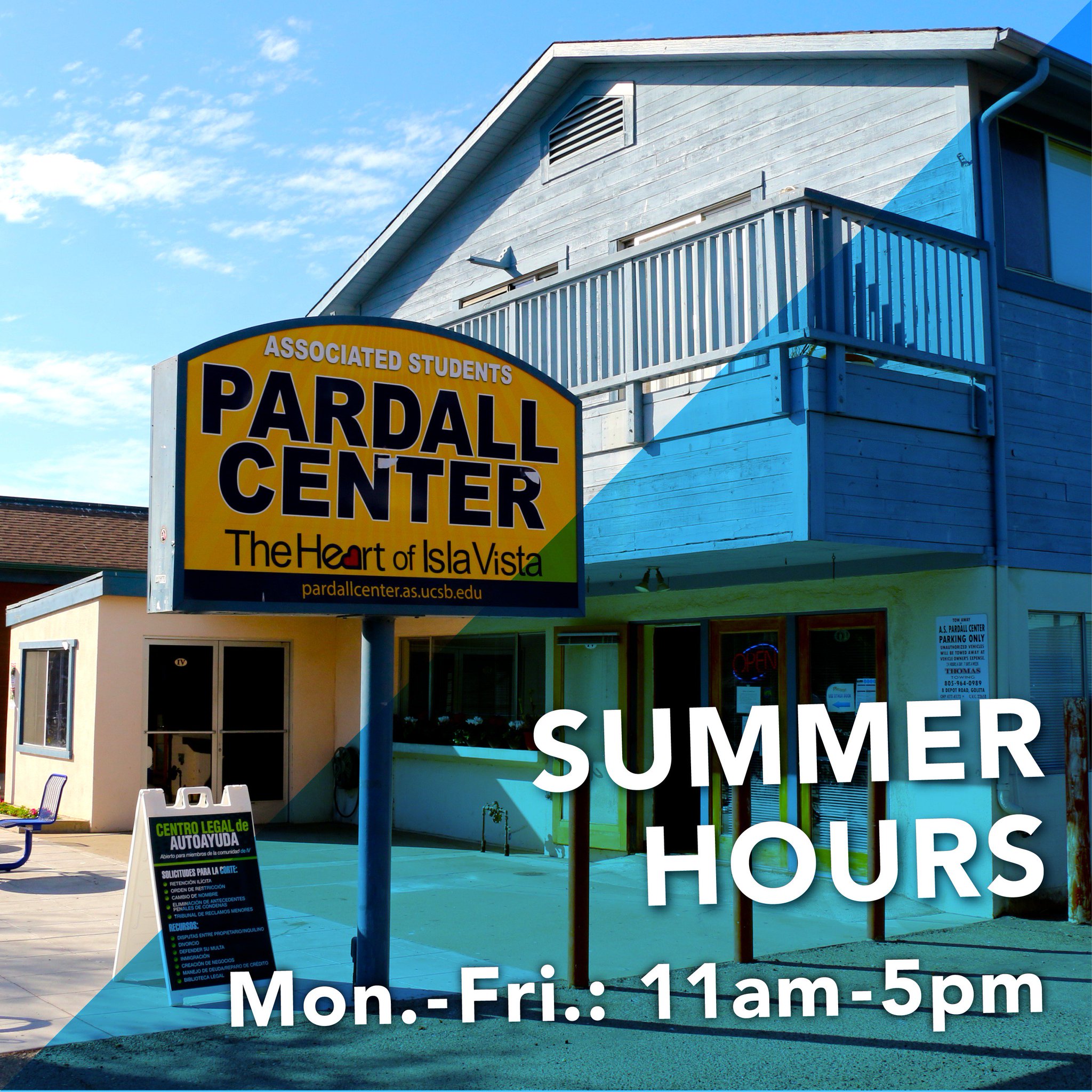 A.S. Pardall Center is open M-F 11am-5pm all summer long. Study spaces, computers, printing, WiFi, & meeting spaces, right in the heart of Isla Vista at 6550 Pardall Rd.