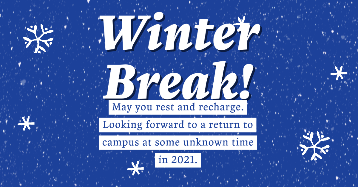 You made it to the end of the Fall 2020 quarter. Whew, Good job! Now it’s time to rest and recharge. We’ll be here for you!