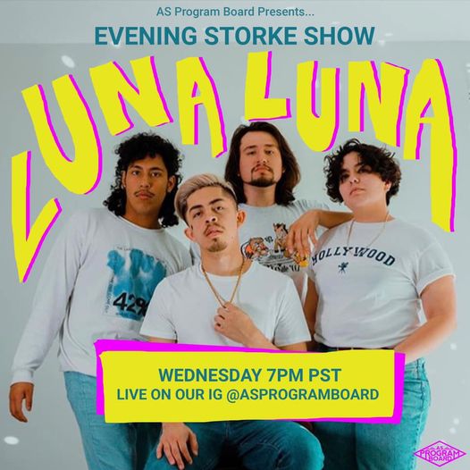Join us TOMORROW at 7 PM (PST) on our Instagram (@/asprogramboard) for a FREE virtual Storke show with Luna Luna!