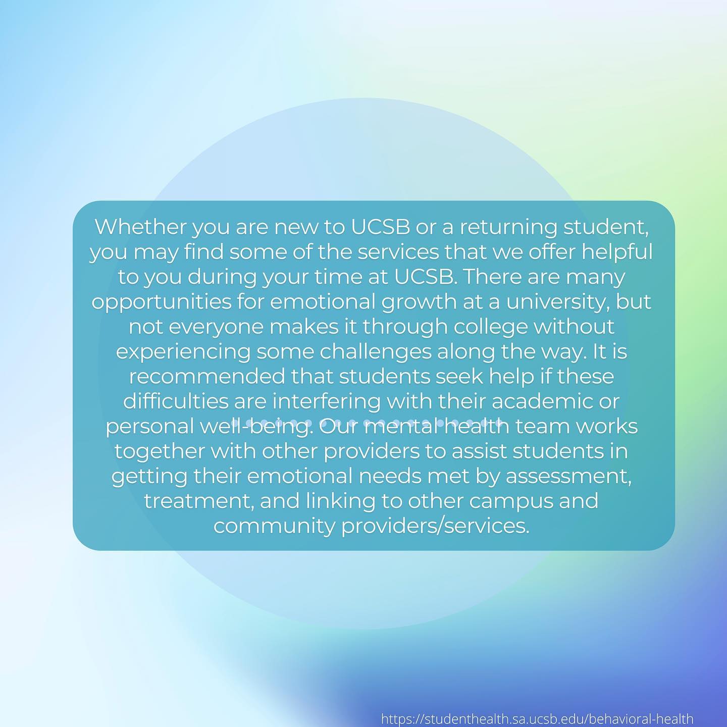Welcome to Week 4 Gauchos! This week we are exploring mental health resources and how to access them. #UCSantaBarbara #MentalHealthMonday